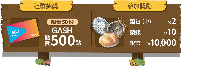 便有機會成為能獲得 GASH 點數 500 點的 50 位幸運旅人之一